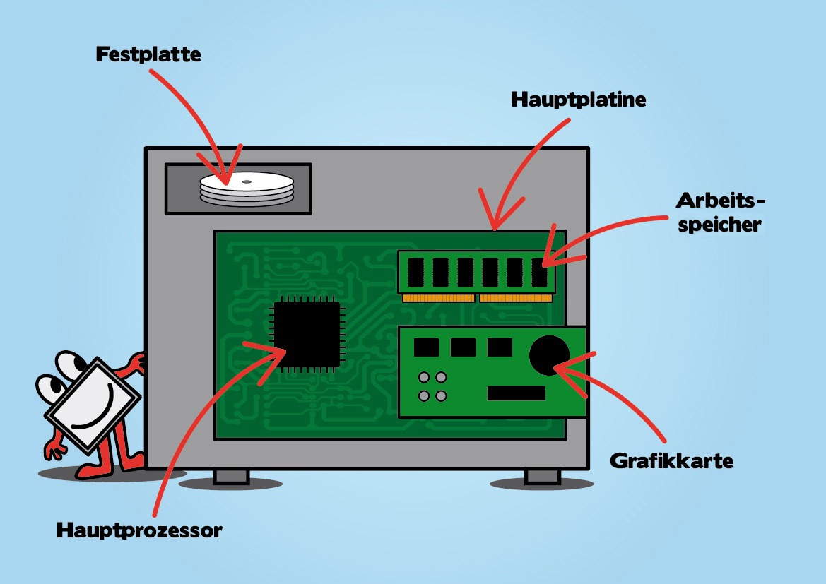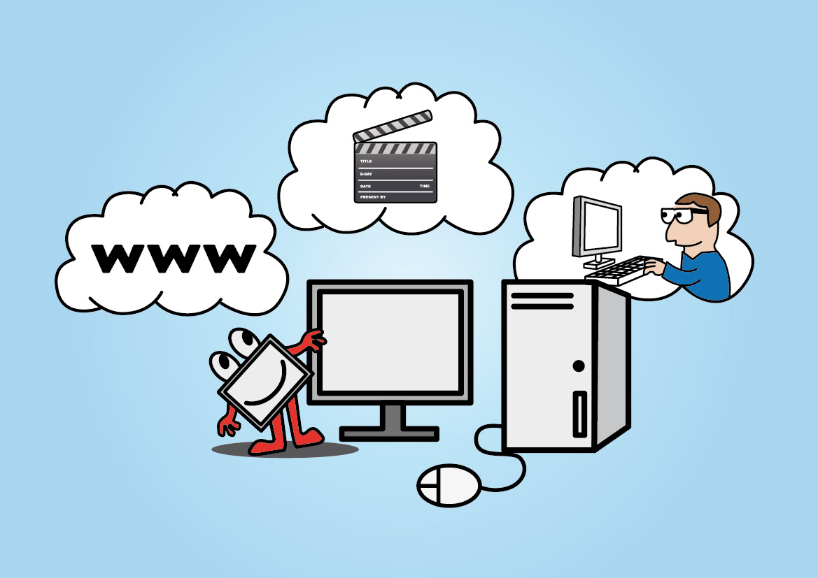 Illustrations for an explanation video for kids showing how a computer works.